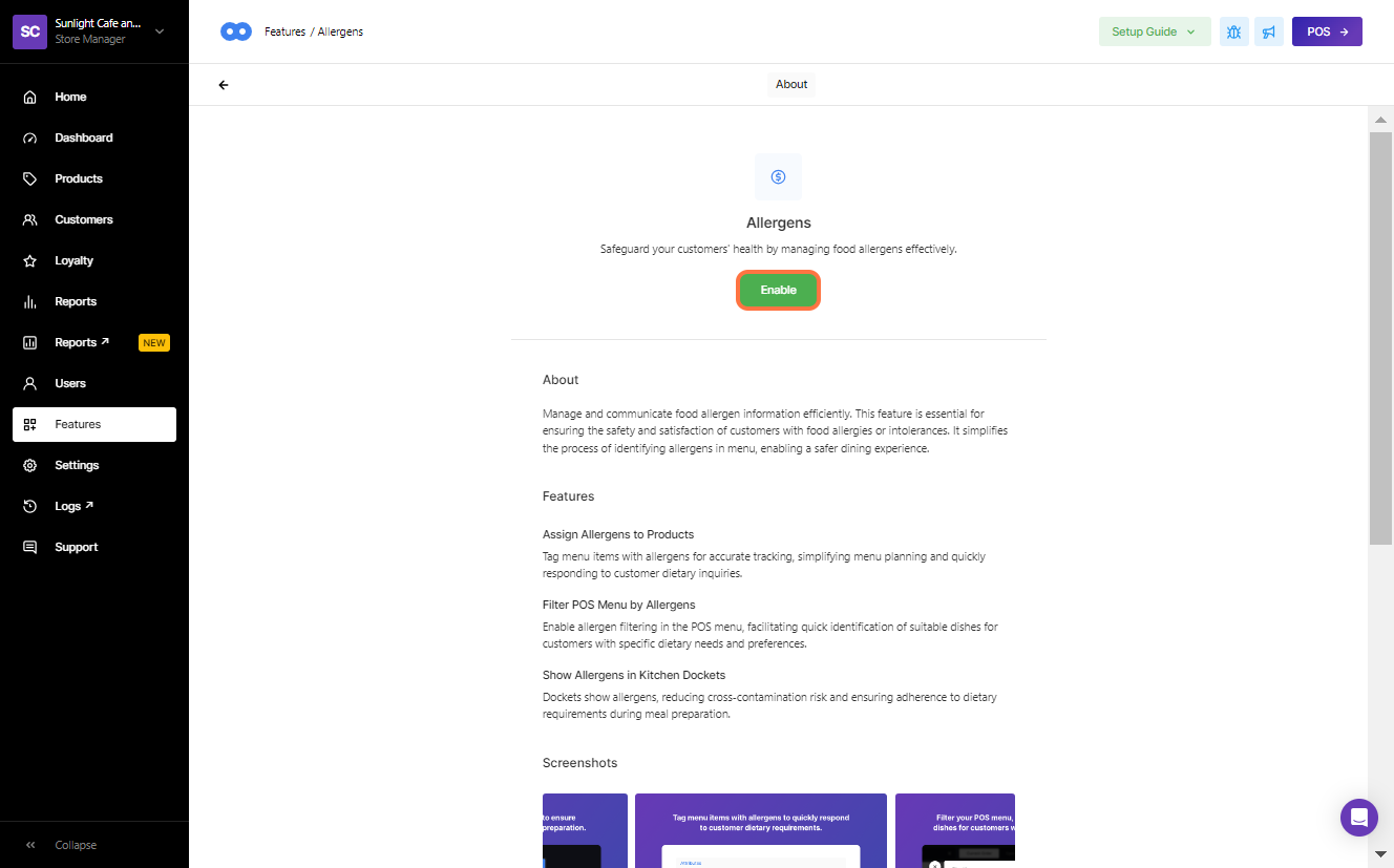 Allergen Warnings is a feature that can be enabled or disabled within Oolio BackOffice. Products can then be configured with tags of potential allergens in which staff can view from the Front of House.