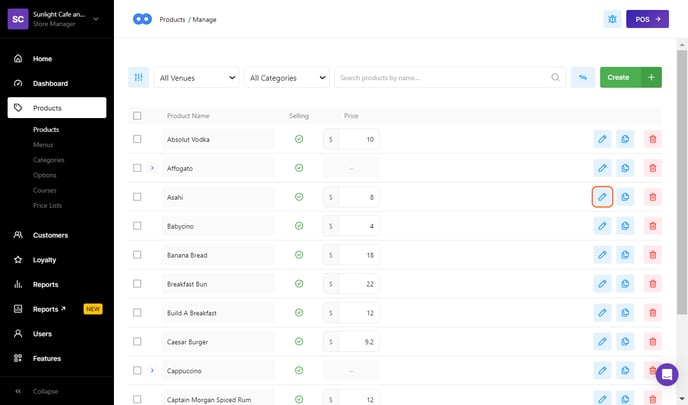 Editing a Product is an important requirement for setting up a menu. To access the Product Settings Page follow the following steps;