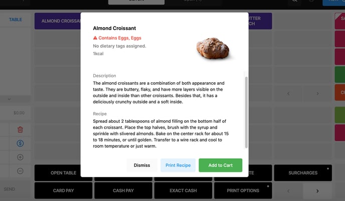 Adding Dietary Tags will allow the user to view these from the POS, Online Store, and Kiosk.