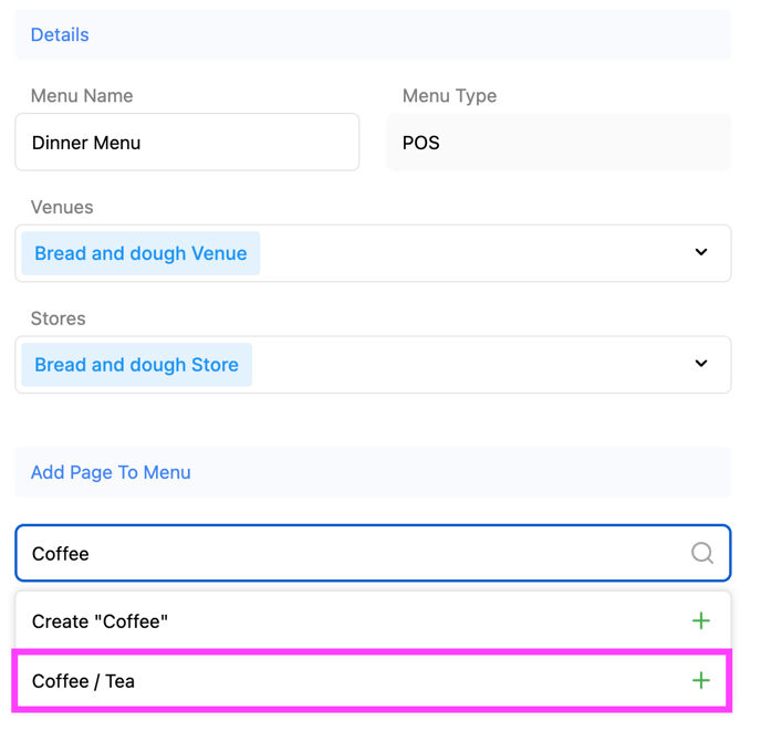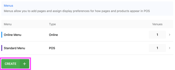 ( other options are: Online Store & Kiosk ) - Venues: your venue(s) that this new menu will apply to