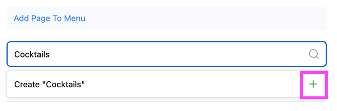 2. Type a ' Page Name ' of your choice => Create & Add to Menu :