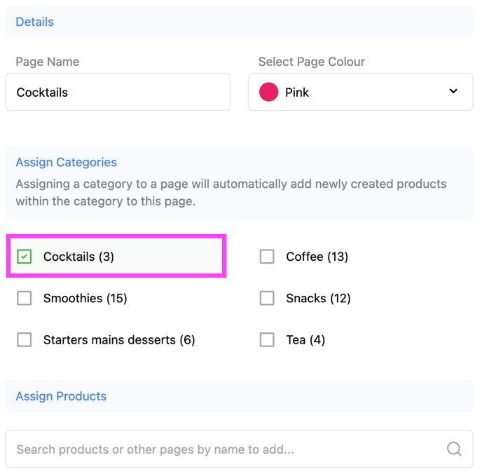 ⚠️ If you don't assign any Categories / Products, your Page won't display