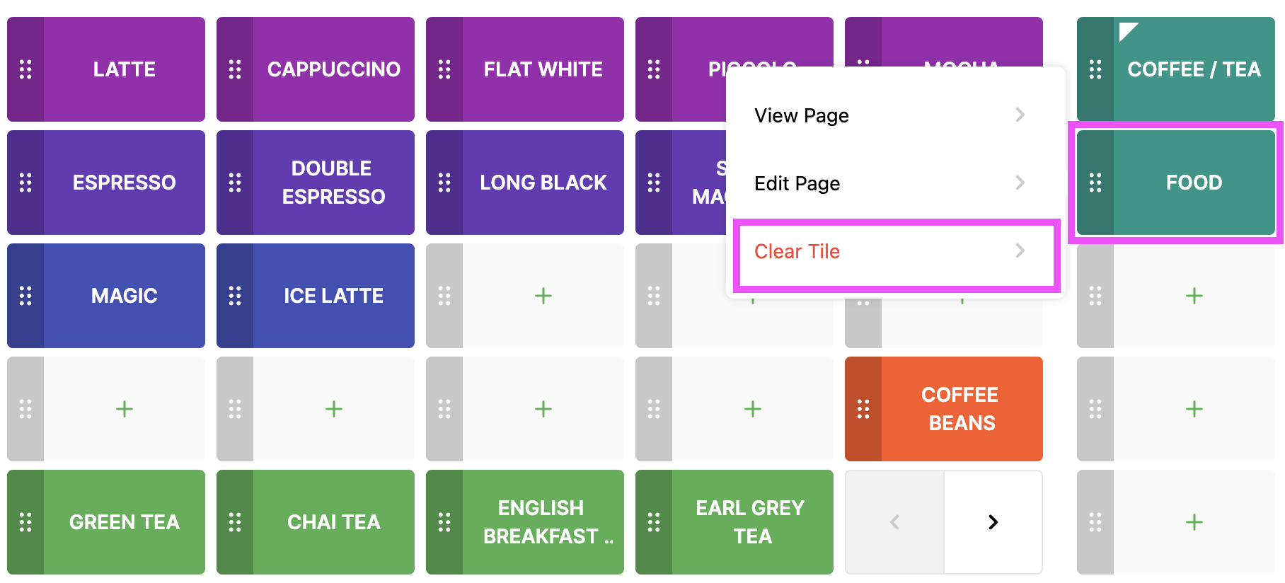 1. To remove a PAGE => Click on the Page => Clear Tile :