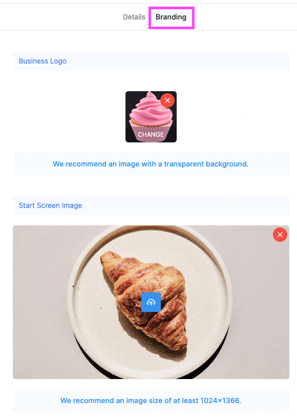 Under ' Branding ' => Upload your Business Logo & a Background image for your Kiosk: