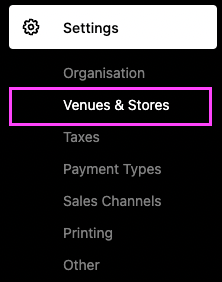 1. In your Back Office => Settings => Venues & Stores (if you have multiple venues)