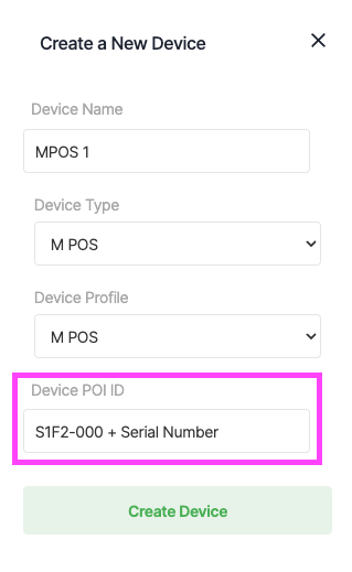 Device POI ID (your Payment Terminal): {Model Name}-000{Serial Number}