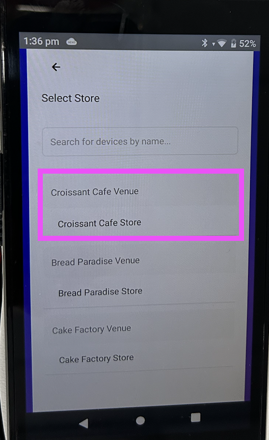 5. Your mPOS will automatically will redirected to 'select Store' => select the Store using the mPOS (if you have multiple venues):