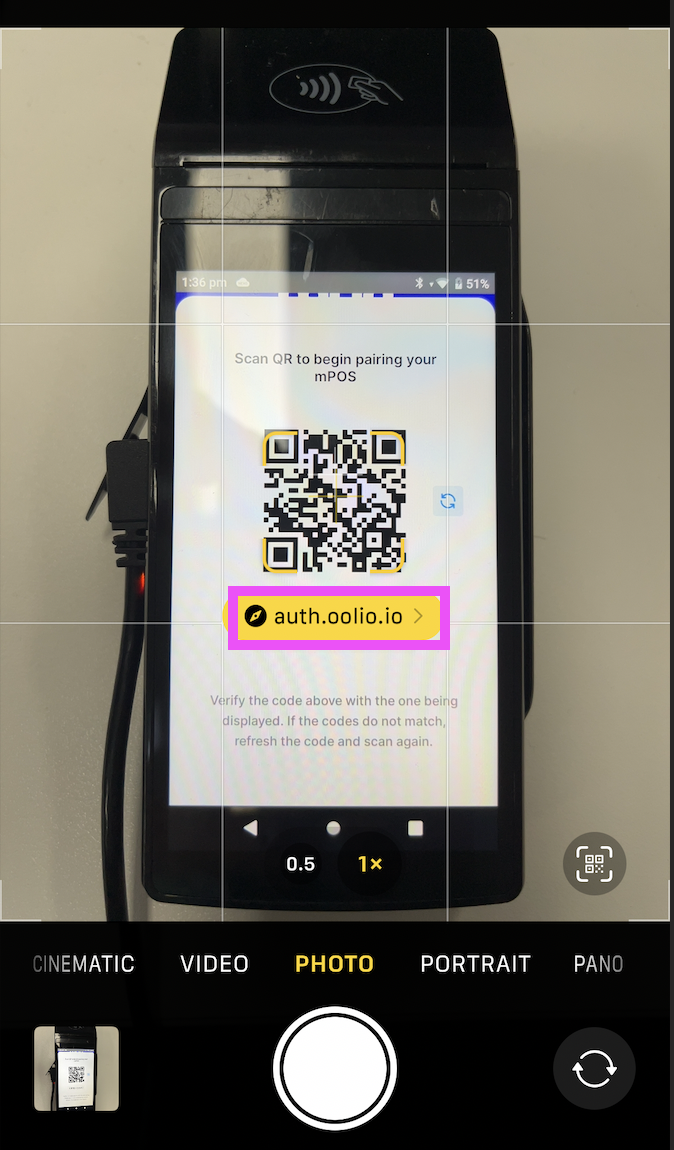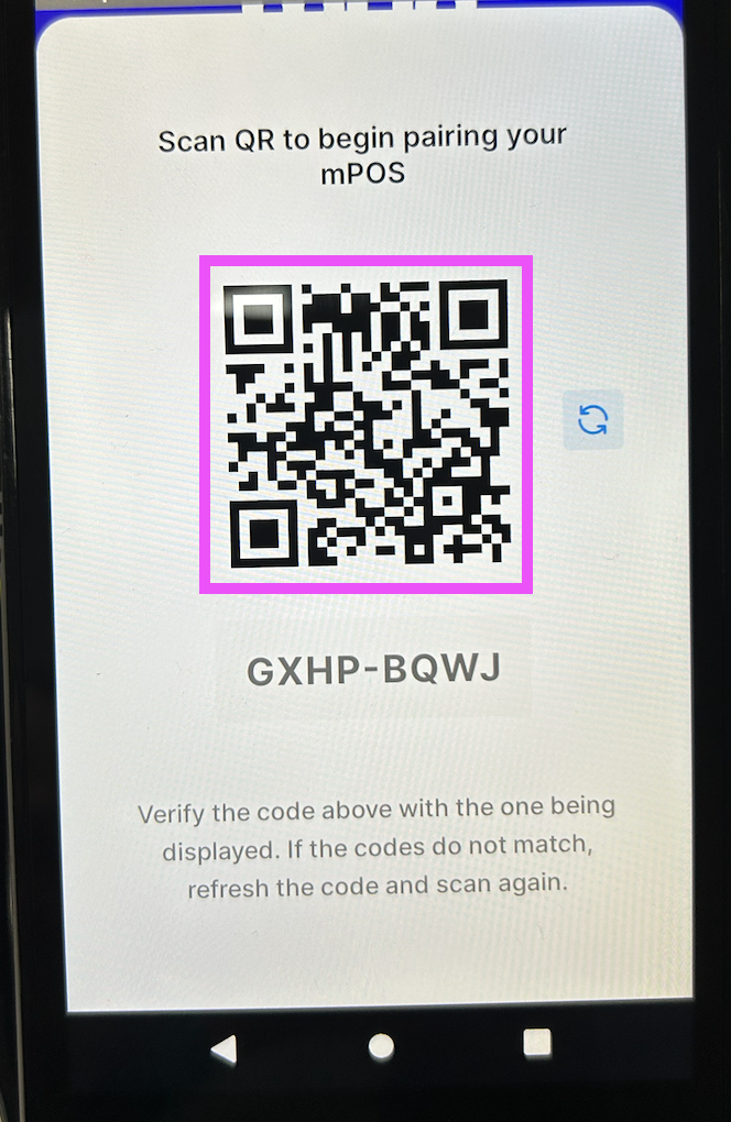 1. On your MPOS => click on the mPOS App => A QR Code will display => Scan the QR code using your phone's camera: