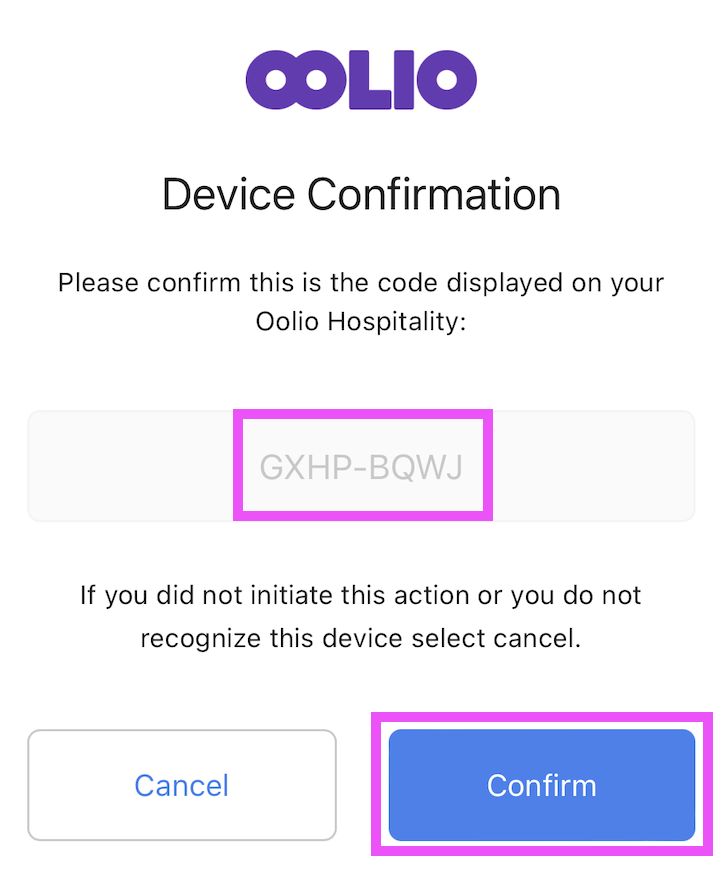 3. On your Phone => a pop-up will appear asking you to confirm the the 8 digits code is matching the one on your mPOS => Confirm: