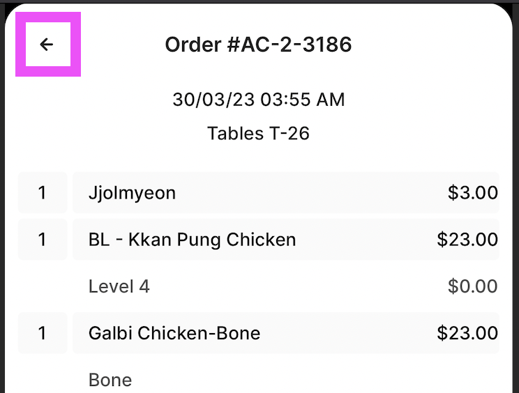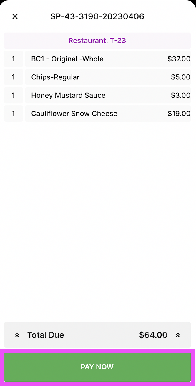 You can see the Table's Order & Total Due, click on ' PAY NOW ' :