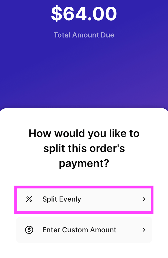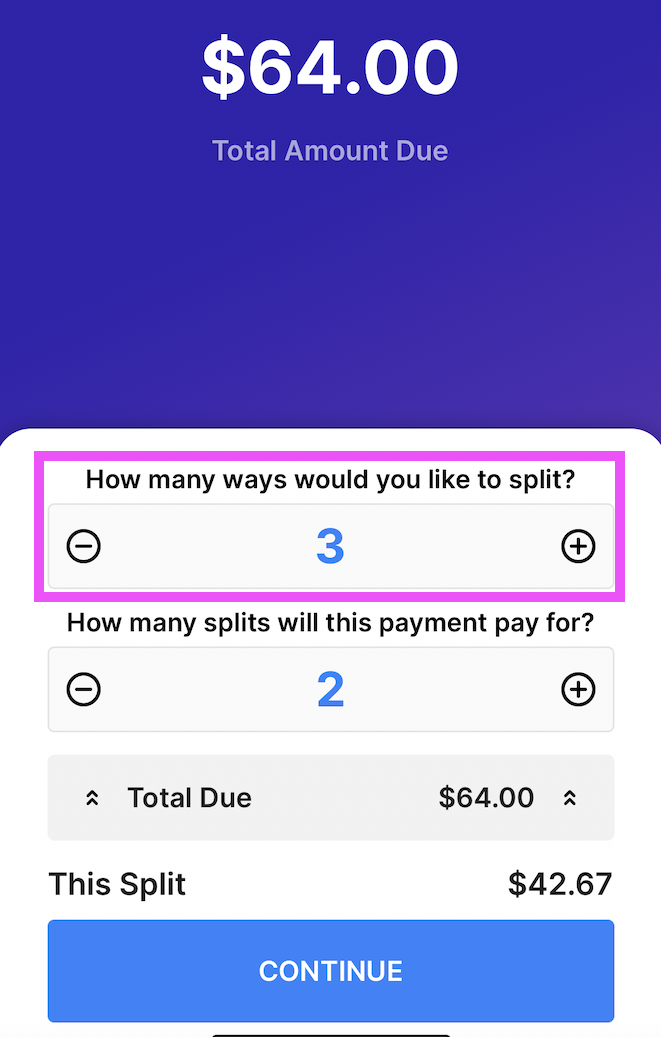 This option allows you to Split your bill in 2,3,4,5, ... up to you!