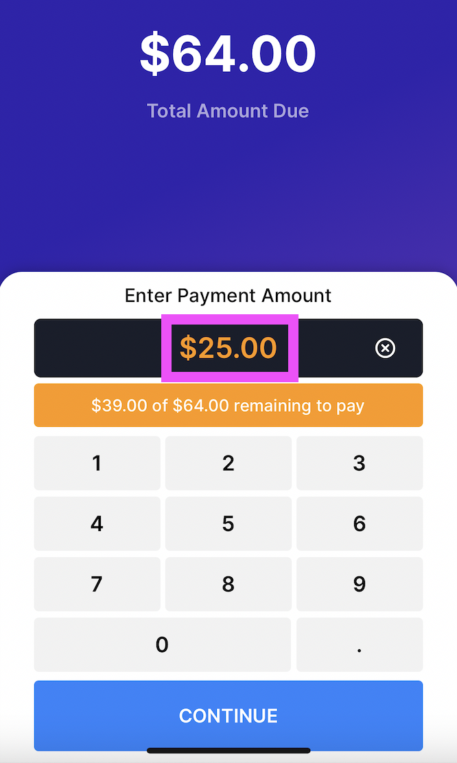 Same as your POS, you can take the full payment or Enter the Payment Amount: