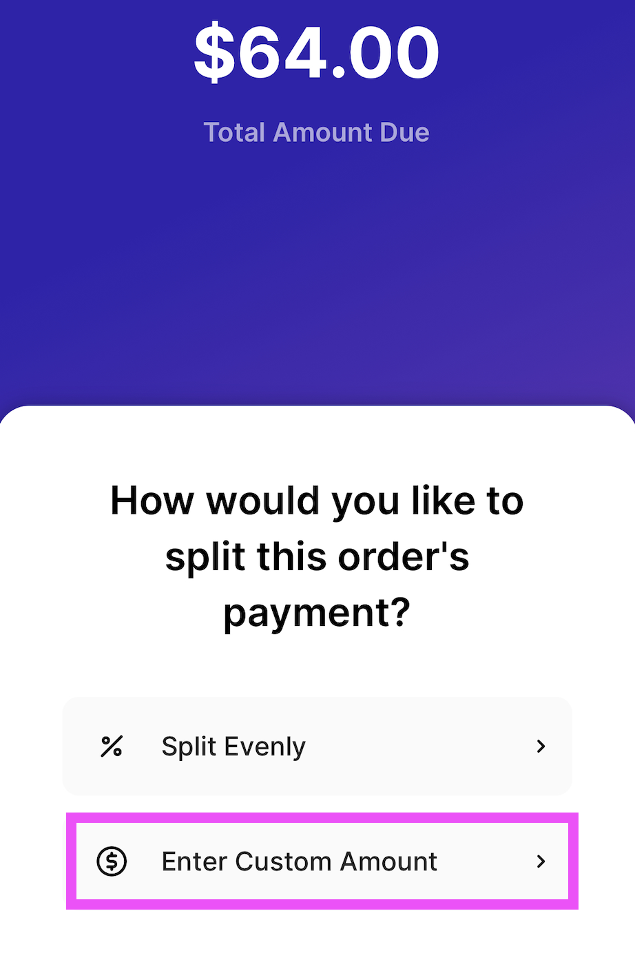 SPLIT PAYMENT: ' ENTER CUSTOM AMOUNT ' :