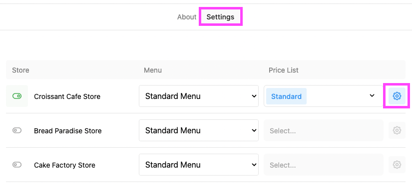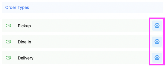Press the ' Cog Icon ' to access the Settings of that Order Type :