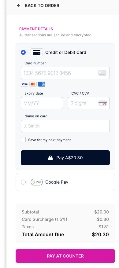 PAY AT COUNTER :