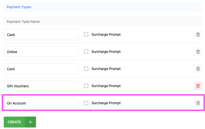 3. You now have a new Payment Types created: 'On Account':