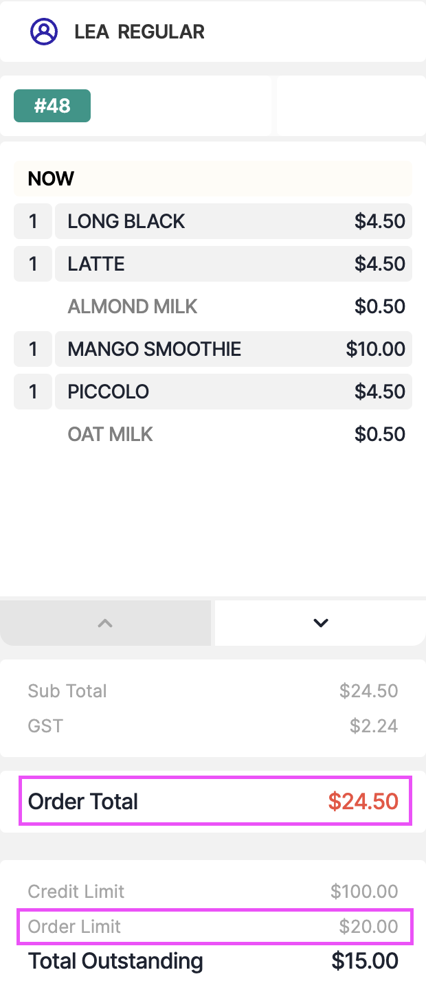Max. Order Limit: This is the maximum amount that can be added to the Account / Tab per purchase.