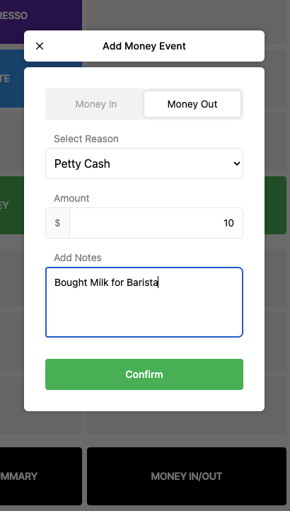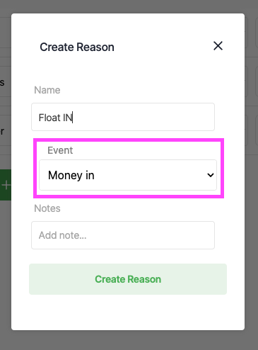 Event: Choose whether the cash is taken OUT of your till or put IN.