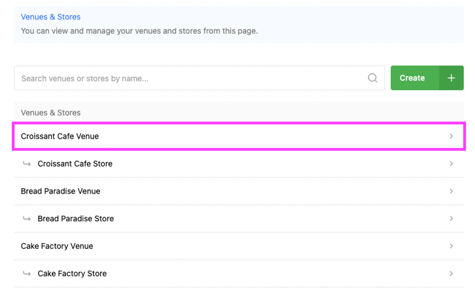 If a have Multiple Venues => Venues & Stores -> select a VENUE :