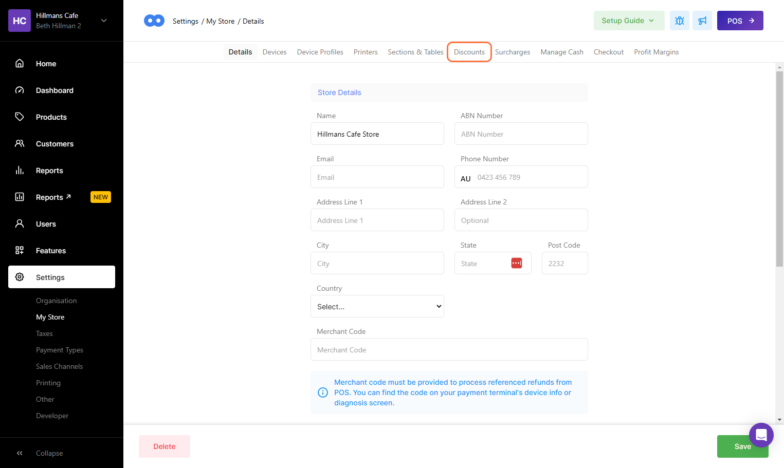 This will direct you to the Adjustment Settings Page, enter the relevant name of the discount wished to be added