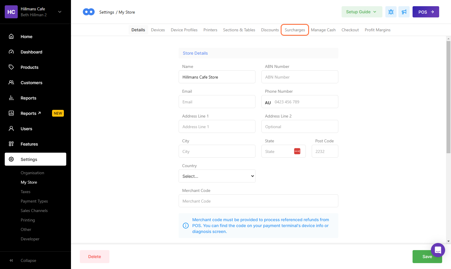 This will direct you to the Adjustment Settings Page, enter the relevant name of the surcharge wished to be added