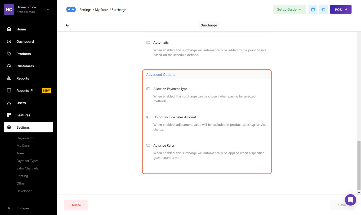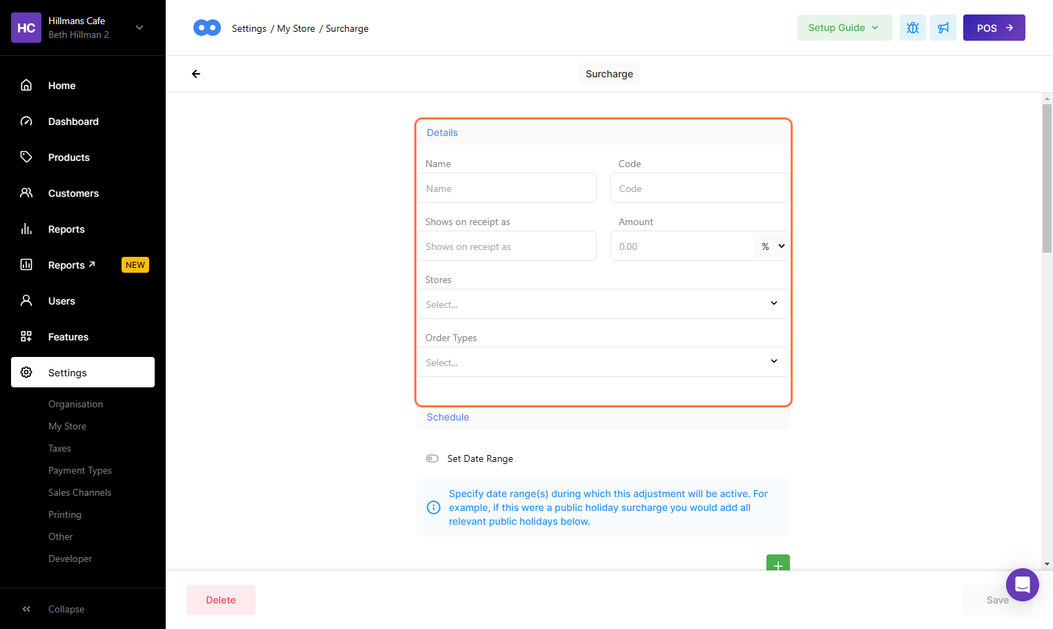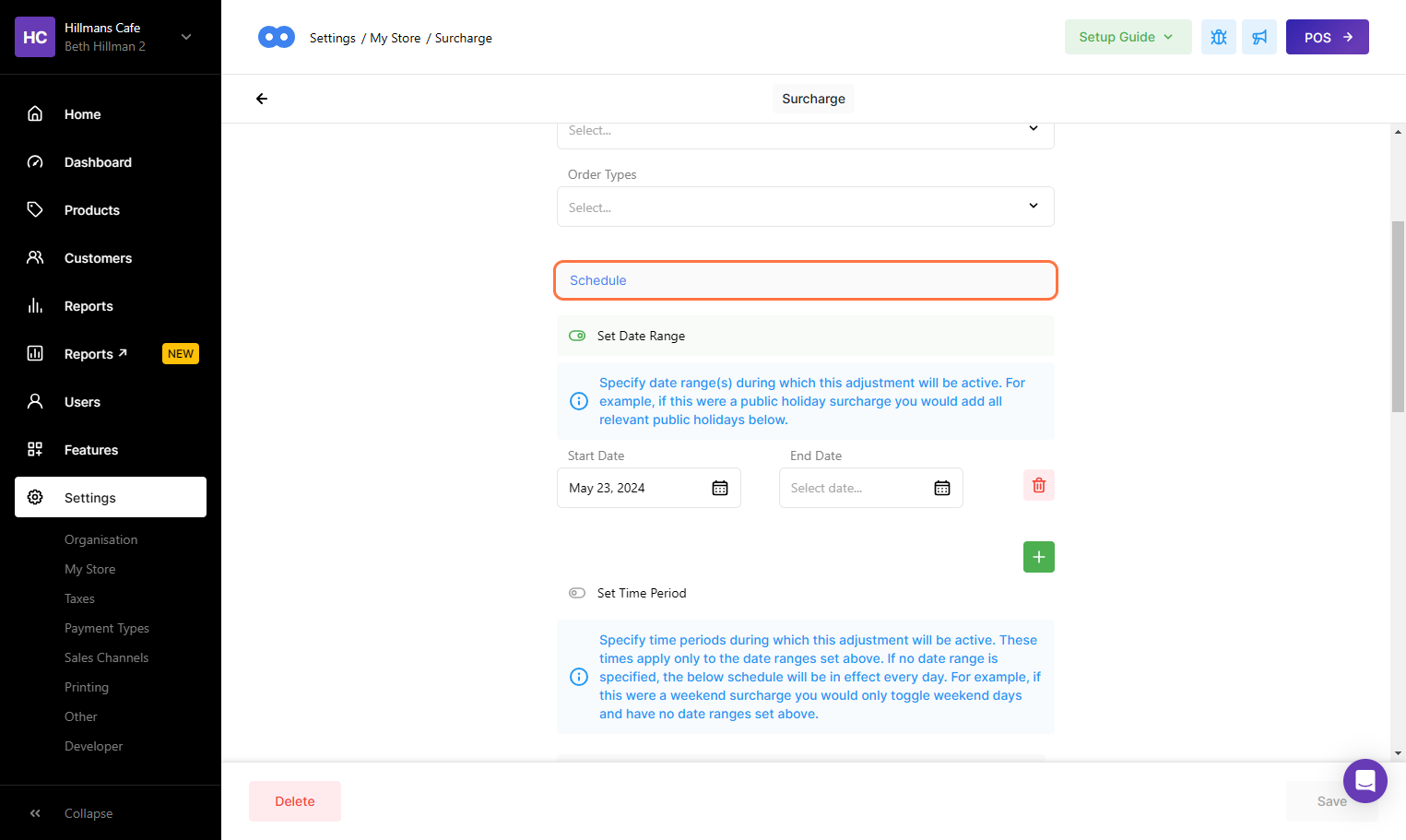 In this article are the steps to set up an ad hoc or scheduled surcharge within Oolio Back Office.