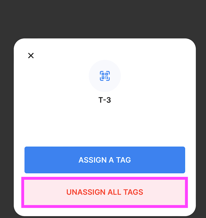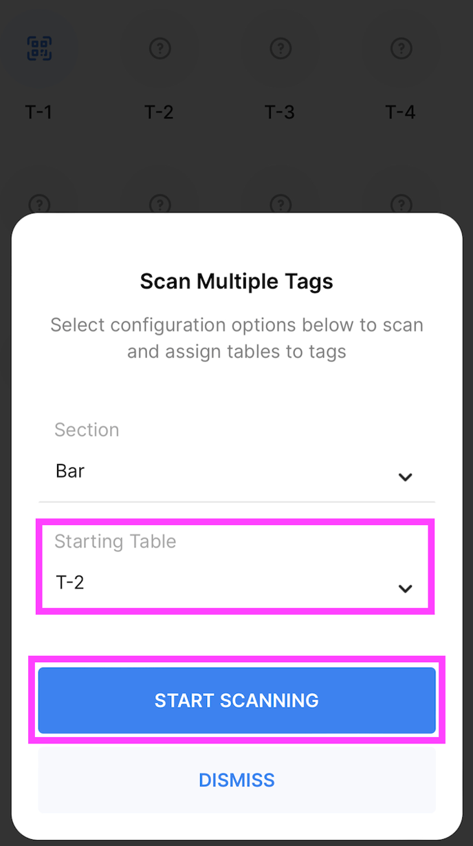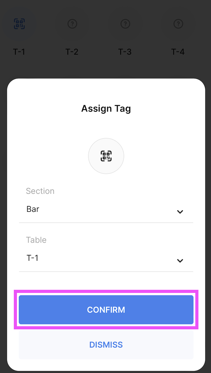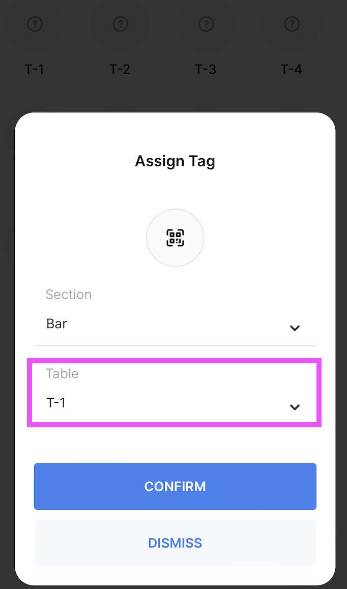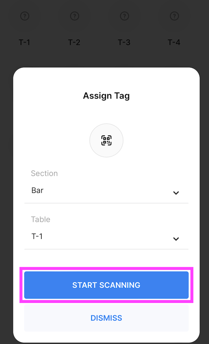 3. Scan the 1st QR Code => when the message ' Tag Scanned Successfully! ' appears: you can start scanning the next one & it will automatically be assigned to the next table :