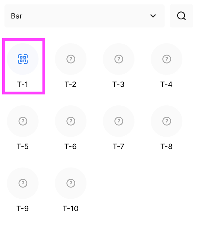 4. When all your QR Codes are scanned: press ' Finish Scanning ' => you will see your newly assigned tables :