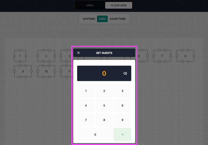 2. Click on a Table to Prompt the guest count modal: