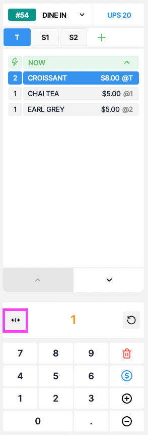 Click on that item => press 1 on the number pad to extract 1 croissant out of 2 => click on the ' Split Icon '